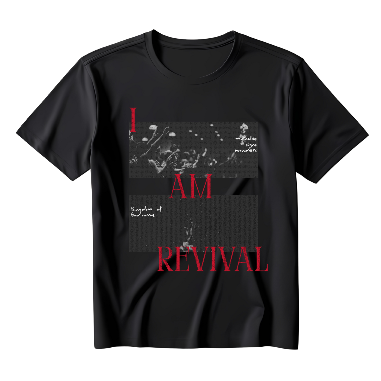 The I AM REVIVAL™ Graphic Tee features a raw, documentary-style front graphic layered with bold red type, inspired by real moments of worship and encounter. The back carries the reminder: “DECREE IT UNTIL YOU SEE IT – Job 22:28” with handwritten affirmations to create the world you live in.